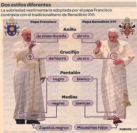 En la edición del Lunes 18 de El Comercio se puede apreciar una fotografía tomada a Francisco I en una reunión que tuvo con los Cardenales en el Vaticano, donde se aprecian sus zapatos: viejos, gastados, simples. Coherencia absoluta.