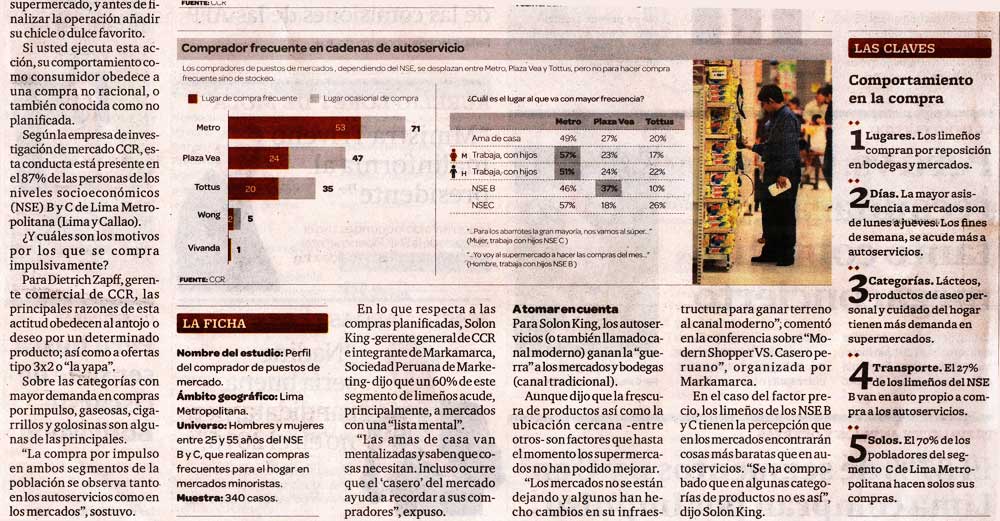 Líneas más abajo, Dietrich Zapff, Gerente Comercial de CCR, señala que las principales razones de esta actitud obedecen al antojo o deseo por un determinado producto, así como así como a ofertas tipo 3 x 2 o “la yapa”.